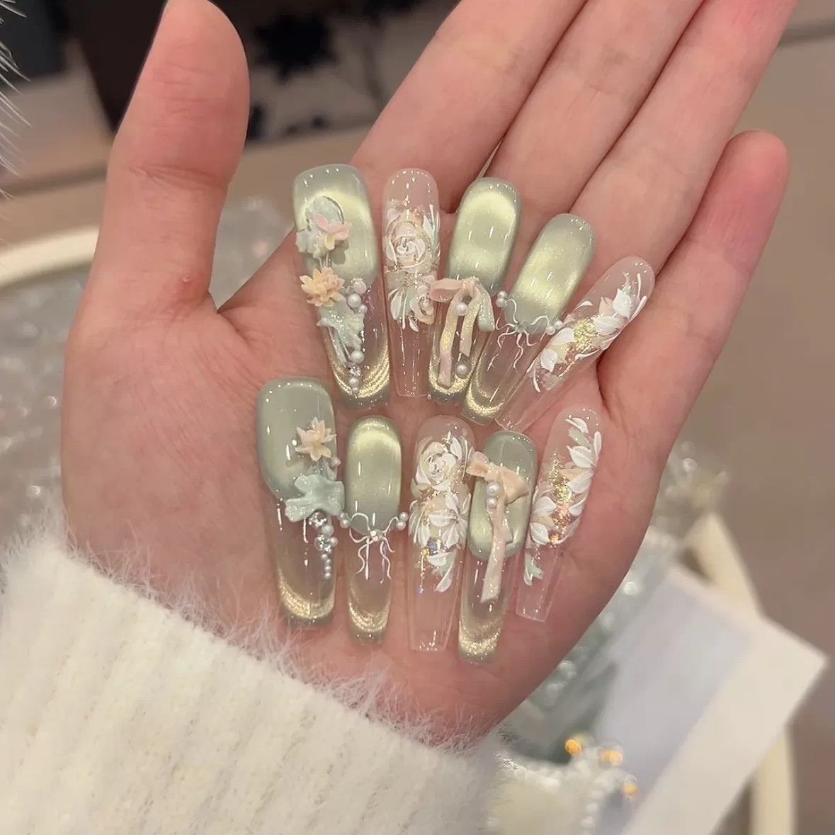 Each piece is hand-painted and inlaid by manicurists with over 10 years of experience, supporting complex techniques such as 3D carving and embossing. Every style is a one-of-a-kind fingertip artwork that is not easy to duplicate.